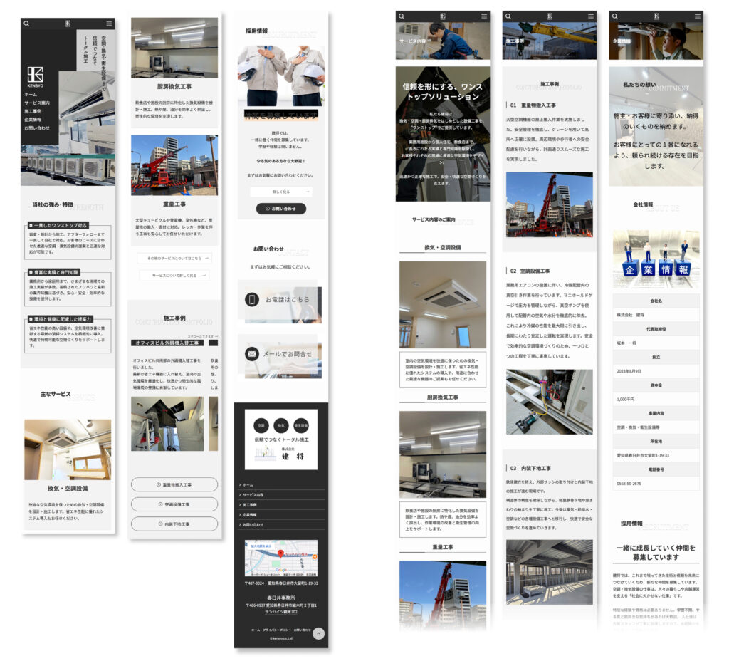 株式会社建将様のPC用ホームページと、スマホサイズのモックアップ写真