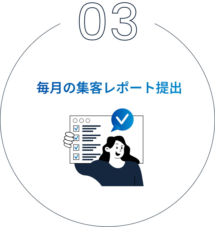 実際に運用を開始していきます。 定期的に運用結果と改善案を共有し、お客様の売上アップに力を尽くします。